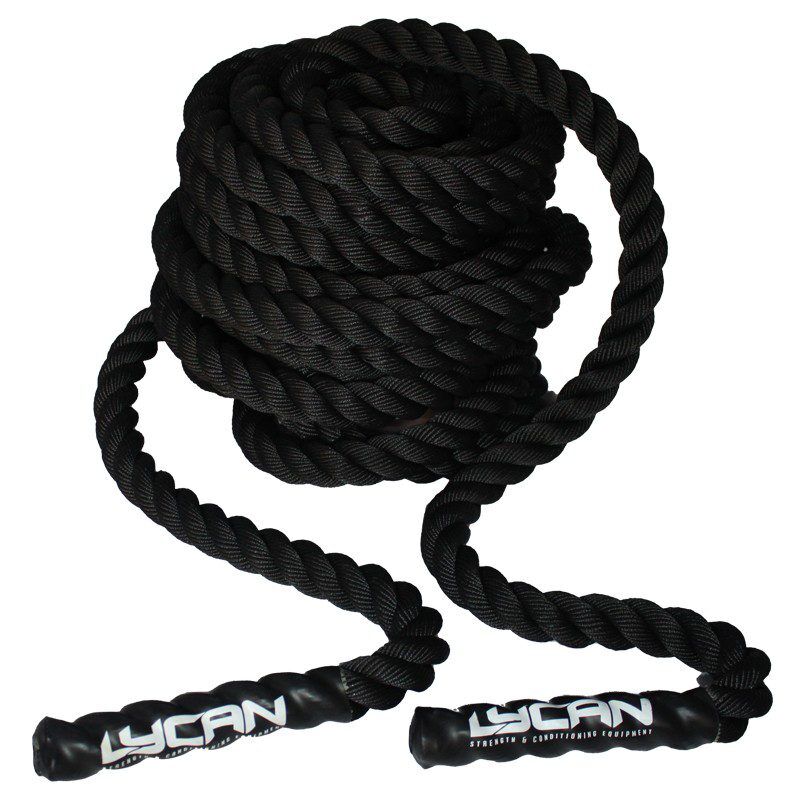 Cabo de Batalla LYCAN de 15 m y 38 mm de grosor. Perfecto para entrenamiento funcional, potencia, agarre y resistencia. Con mangos cómodos y trenzado ultraresistente.