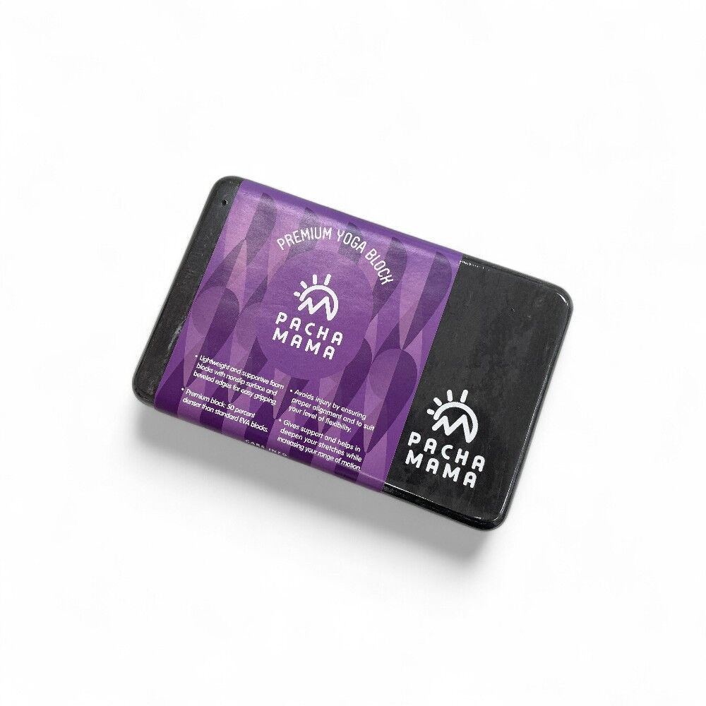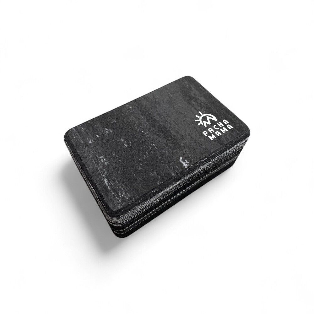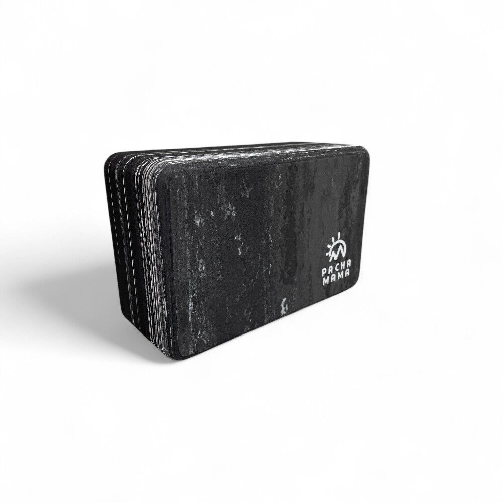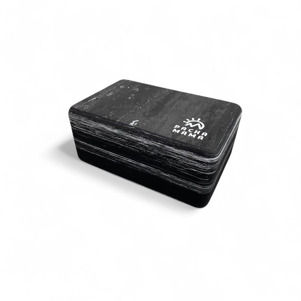 Bloque de yoga ligero y resistente de la marca Pachamama. Fabricado en goma de alta densidad, ideal para mejorar la alineación, el equilibrio y la estabilidad en tu práctica. Disponible en gris sólido o marmoleado.