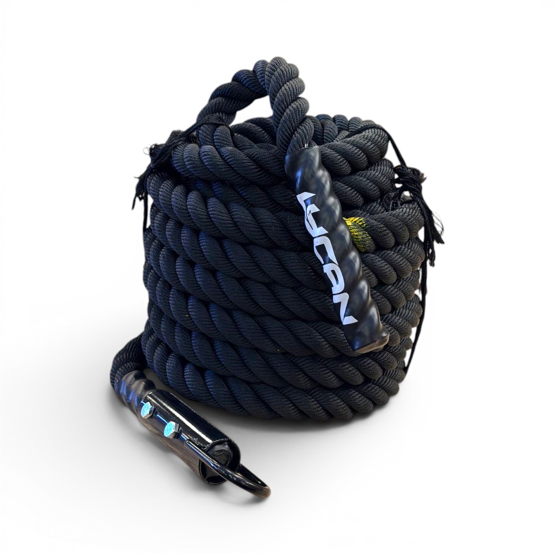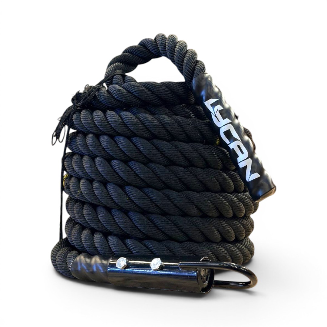 El Cabo de 15 metros con Gancho de Metal LYCAN está diseñado para entrenamientos funcionales de alta exigencia, especialmente en disciplinas como HYROX y Cross Training. Su longitud cumple con estándares competitivos, permitiendo realizar ejercicios de arrastre con precisión y seguridad.
