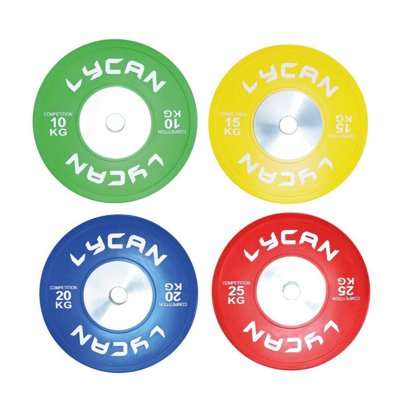 - Cumplimiento de normas internacionales: Los Discos de Competencia Olímpicos Kilos LYCAN cumplen con las especificaciones y requisitos de la Federación Internacional de Halterofilia (IWF) y otras organizaciones de levantamiento de pesas.
