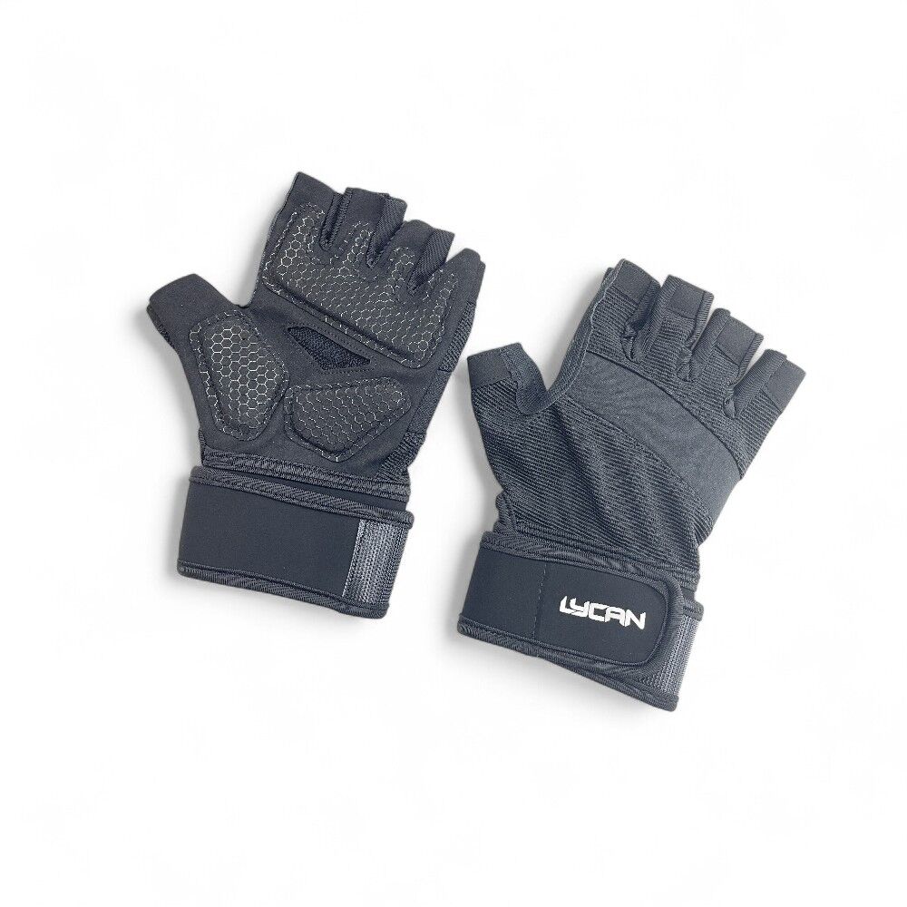Guantes de Entrenamiento Pro LYCAN son ergonómicos con palma acolchonada y ajuste en muñeca, ideales para entrenamiento funcional, pesas, ciclismo y más.