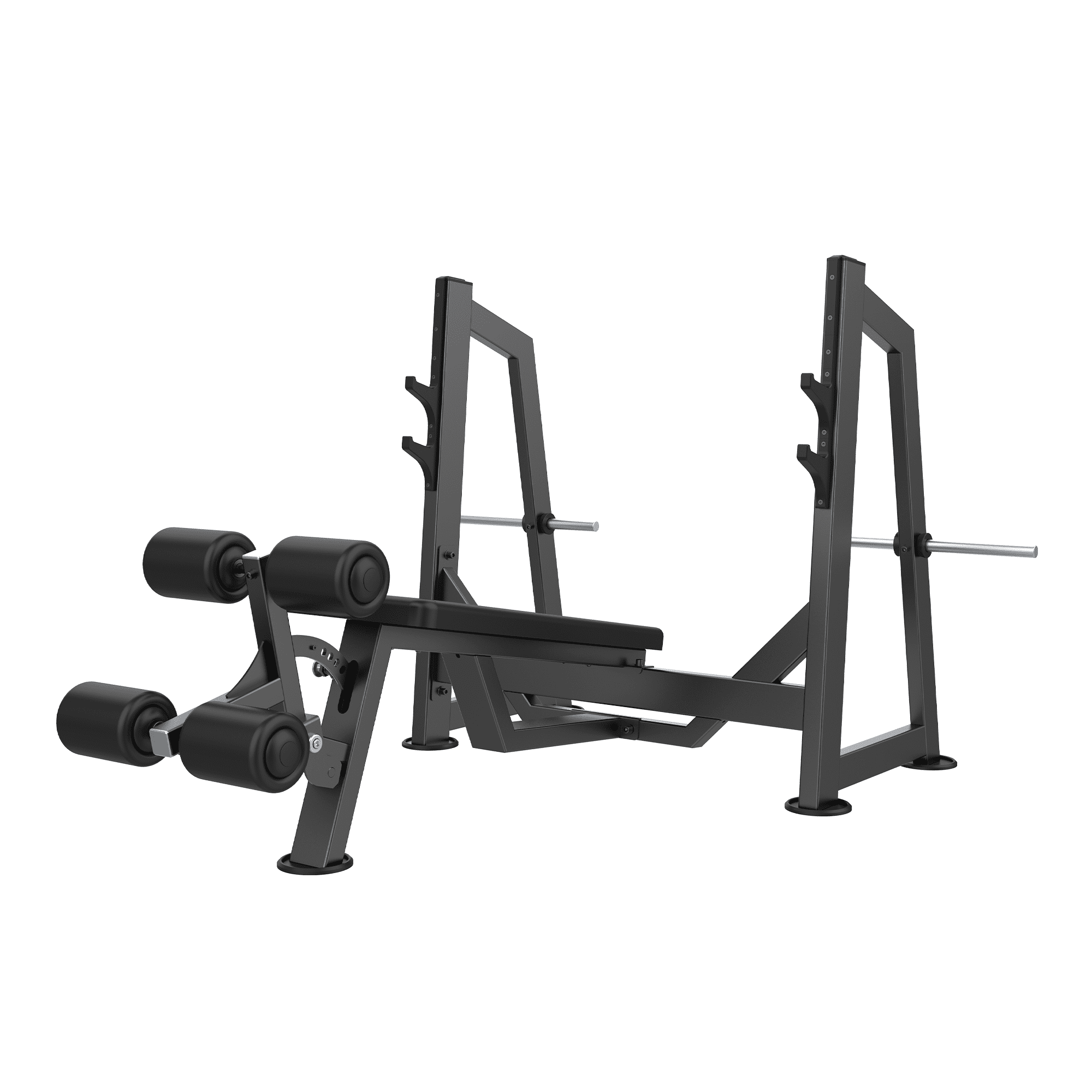 El Banco Olímpico Declinado de la Línea Pro de Lycan permite a los usuarios realizar press declinado sin una rotación externa excesiva de los hombros. El ángulo fijo del asiento proporciona una correcta posición, y las almohadillas ajustables para las piernas aseguran la máxima adaptabilidad para usuarios de diferentes tamaños.