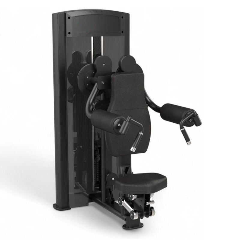 Máquina profesional para fortalecer y definir los deltoides con brazos contrabalanceados y diseño ergonómico.