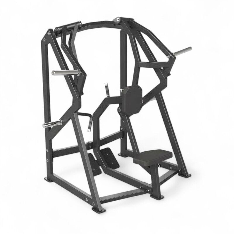 Máquina de remo bajo con carga por discos y brazos independientes.