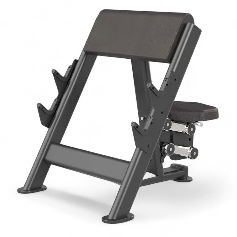 Banco predicador para entrenamiento de bíceps con estructura profesional.