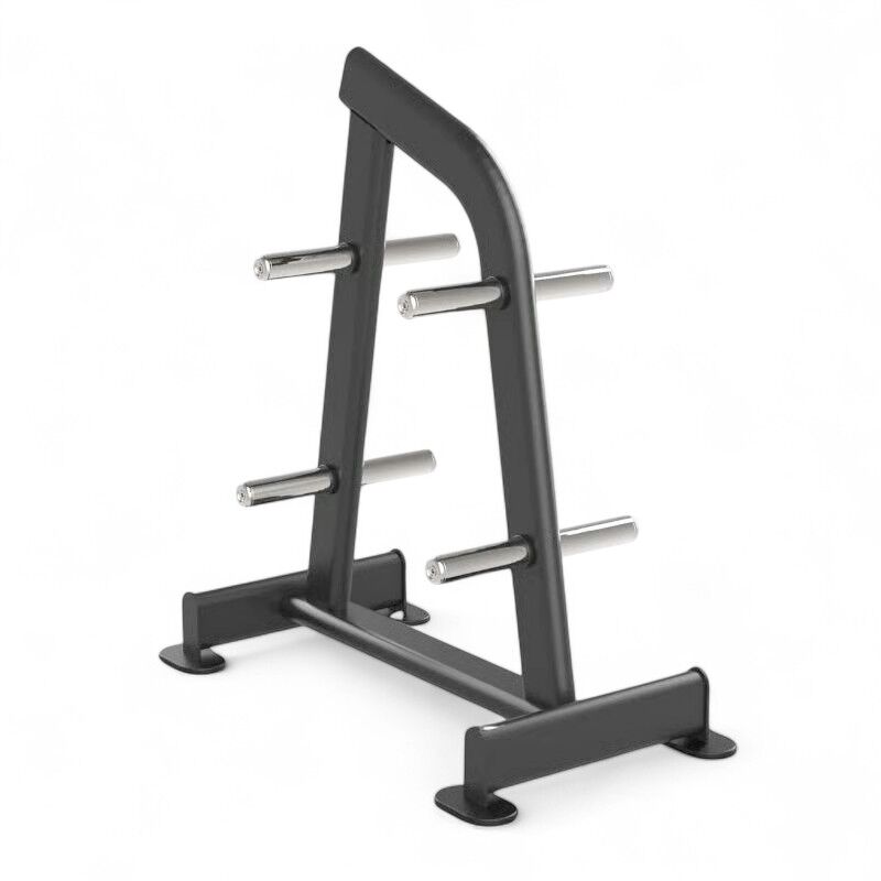 Soporte profesional para discos, con 4 barras cromadas de almacenamiento y diseño compacto.