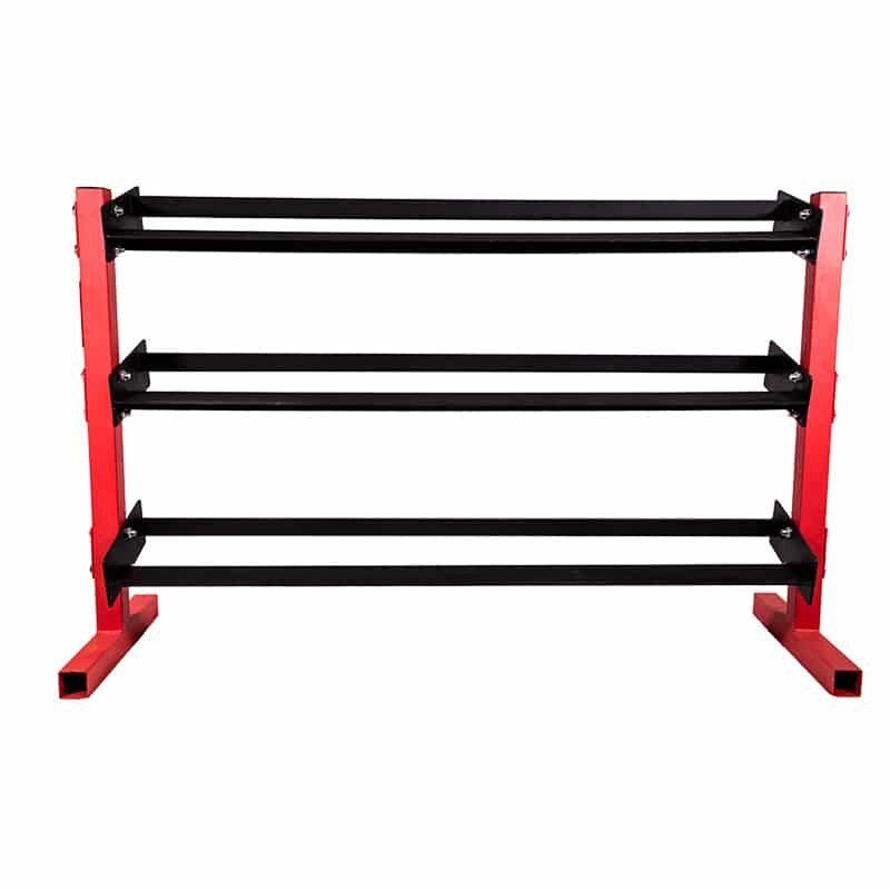 Diseño de 3 niveles: El rack cuenta con tres pisos para organizar tus mancuernas, maximizando el espacio disponible en tu área de entrenamiento y facilitando el acceso a tus pesas durante el ejercicio.