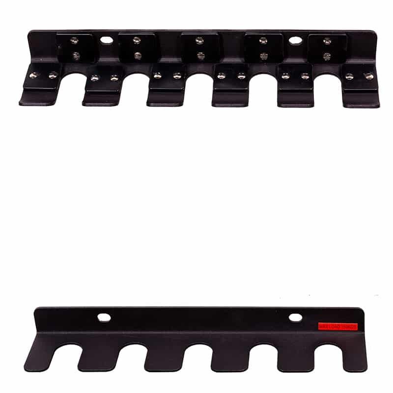 El diseño de este rack incluye dos soportes, uno superior y otro inferior, que permiten un fácil acceso y organización de las barras.