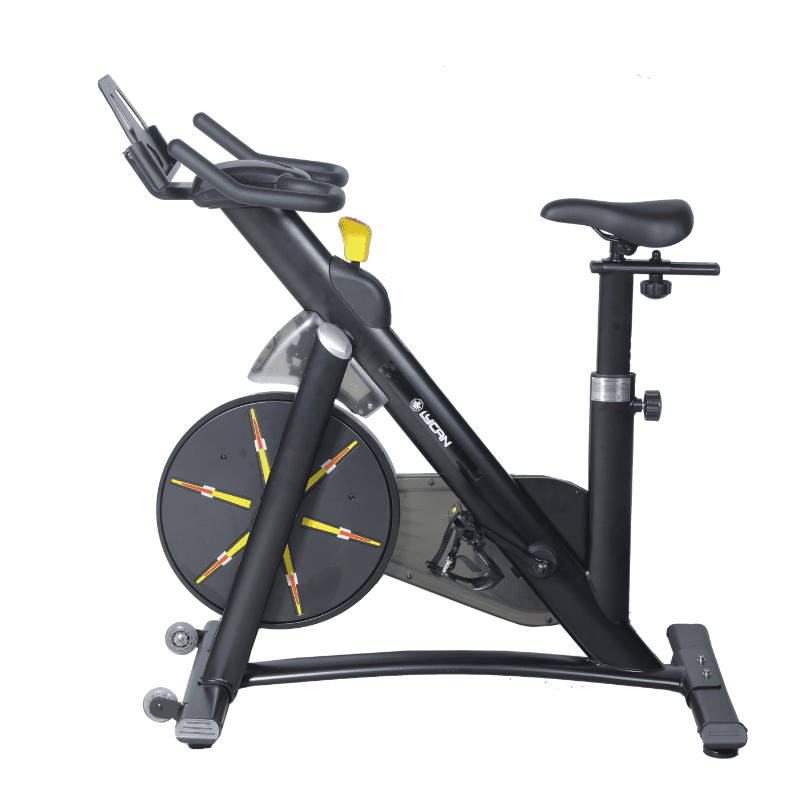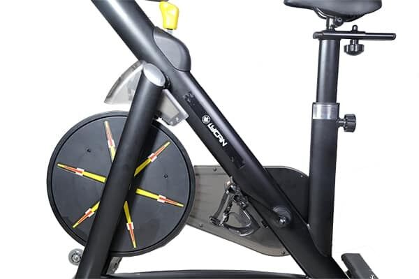 Spin Bike Modelo Home LYCAN con resistencia magnética, ideal para el entrenamiento en casa. Puede ser utilizado por hombres y mujeres de todos los niveles de fitness, independientemente de la forma del cuerpo y la experiencia. La resistencia magnética, superior a la resistencia de fricción, ofrece más resistencia al volante de inercia de 7 kg.