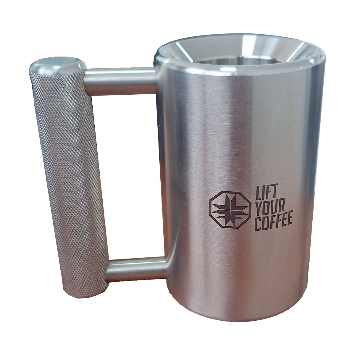 Taza para café diseñada ahora para el atleta, fabricada del mismo material que nuestras famosas barras cromadas y con un mango moleteado que te recordara tu ultimo levantamiento. Prepara tu agarre de gancho (hook grip) que levantar esta, será todo un desafío en tu siguiente sorbo de café.